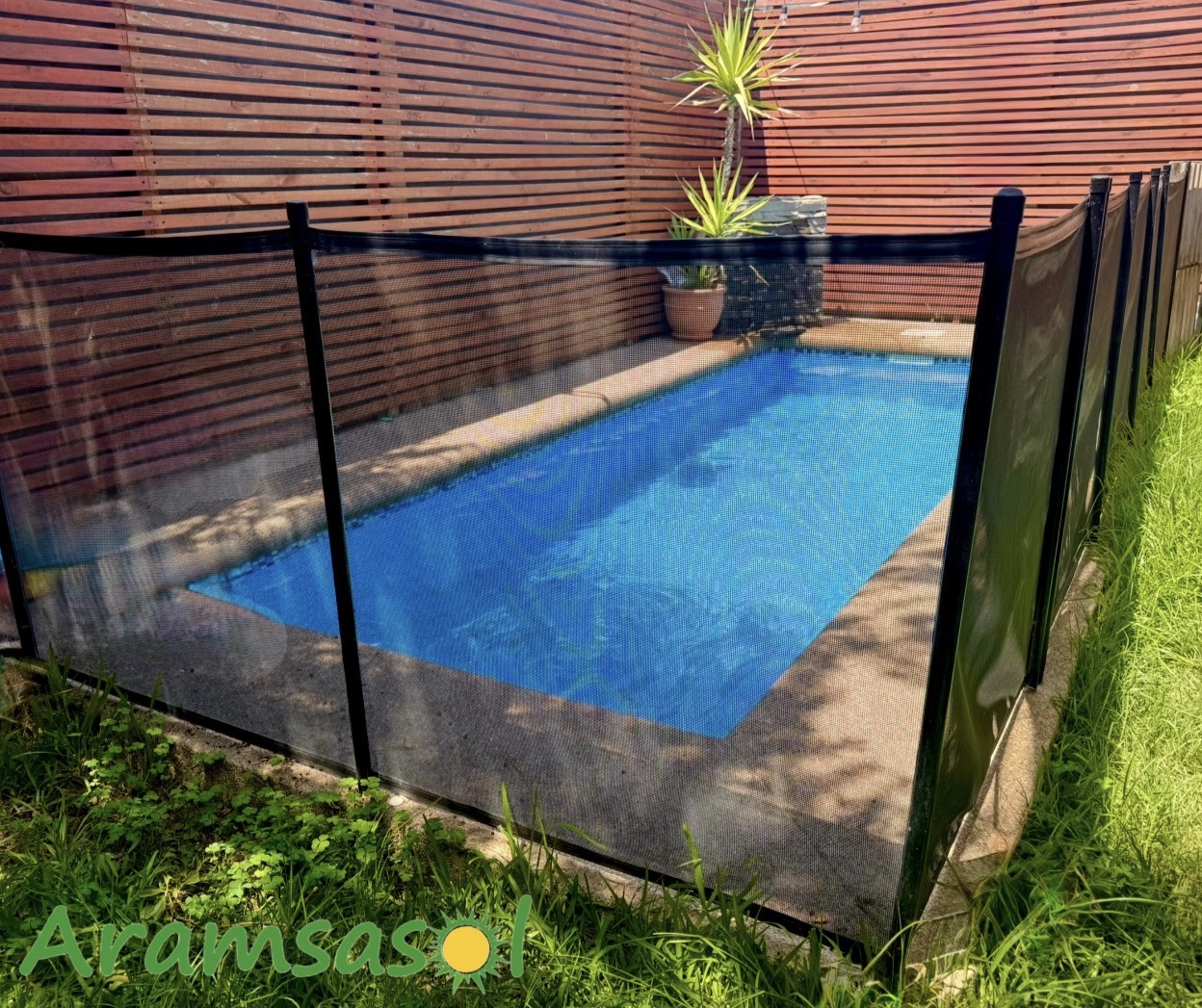 Nuestras cercos están fabricados con productos de alta calidad (malla Textilene de alta resistencia), postes de aluminio y acero inoxidable, un diseño en color negro semi-transparente que permite mantener la visibilidad hacia la piscina sin interrumpir la armonía del jardín. Además, cuentan con cierres de seguridad imposibles de manipular por un niño, lo que las convierte en la mejor opción para proteger a tus hijos y mascotas. 👧🏼👶🏽👦🏻🐶.